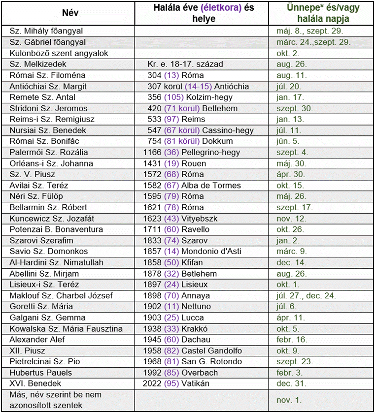 ezeket követik gyakoriság szerint Szent Mihály főangyal jelenései.