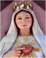 celá v bielom, na hrudi mala červené Srdce obklopené tŕňovou
