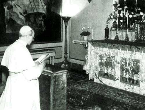 In der vorderen Altarbank saß Papst Pius der XII. Er